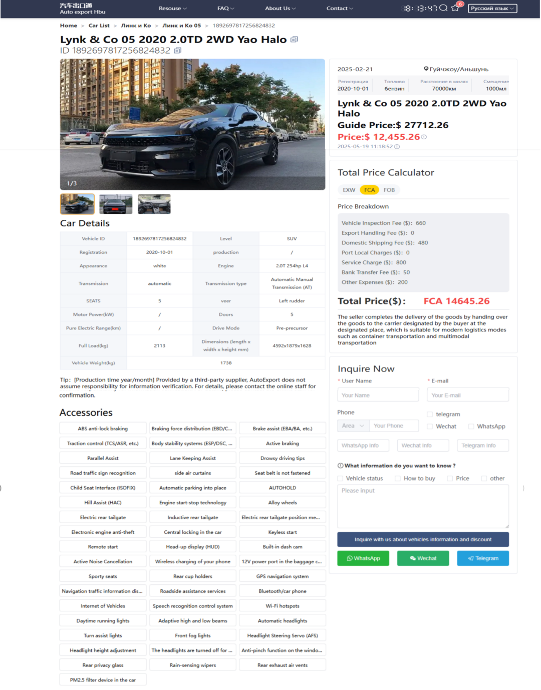 Complete the "car selection (see parameters/configuration)→ price calculation (full cost transparency)→ inquiry (direct docking with the seller)" within 10 minutes., greatly improve procurement efficiency and avoid the loss of time and information for cross-border communication;